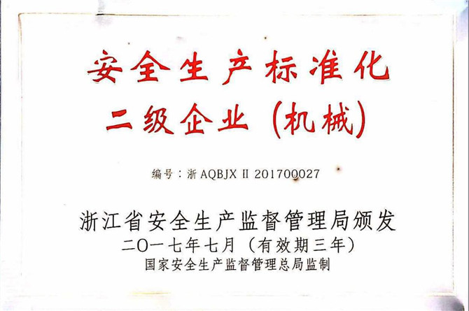 2017年7月27日,浙江省安全生產(chǎn)監(jiān)督管理局公布71家安全生產(chǎn)標(biāo)準(zhǔn)化二級達(dá)標(biāo)企業(yè)名單,華寶公司通過國家監(jiān)督總局的安全生產(chǎn)標(biāo)準(zhǔn)化二級企業(yè)達(dá)標(biāo)綜合考評,符合安全生產(chǎn)標(biāo)準(zhǔn)化二級企業(yè)達(dá)標(biāo)要求,被評選為免審換證安全生產(chǎn)標(biāo)準(zhǔn)化二級企業(yè)。此次只有四家企業(yè)符合免審換證標(biāo)準(zhǔn),華寶公司能成為其中一家企業(yè),是所有員工共同努力創(chuàng)造的結(jié)果。