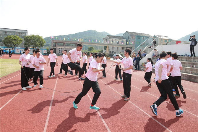 “集體跳繩”,比賽每隊(duì)20人參加,兩人搖繩,剩下18人依次跳過繩子。比賽過程中有人絆到繩子,有的隊(duì)伍沉穩(wěn)應(yīng)對,有的隊(duì)伍則亂了分寸,接連幾次絆到繩子。最終行政中心隊(duì)以3分鐘內(nèi)跳了235個(gè)獲得“集體跳繩”單項(xiàng)比賽第一名。