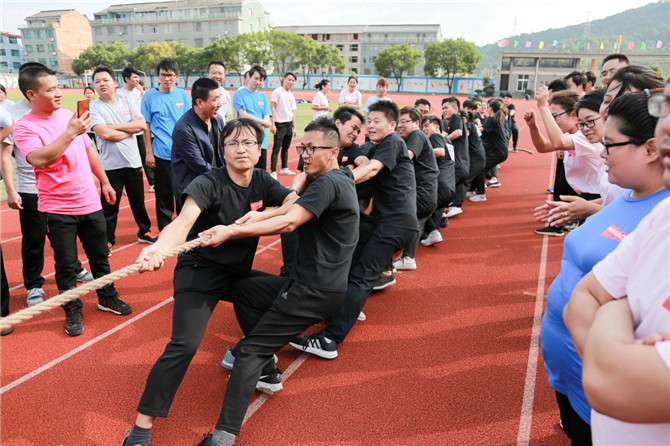 “拔河”作為運(yùn)動(dòng)會(huì)的壓軸項(xiàng)目,也是精彩萬分。每個(gè)參賽運(yùn)動(dòng)員們?yōu)榱藞F(tuán)隊(duì)榮譽(yù)用盡全身的力氣與對手頑強(qiáng)拼搏,特別是當(dāng)雙方勝負(fù)難分的時(shí)刻,盡管他們此時(shí)都已經(jīng)大汗淋漓,身心疲憊,但是他們?nèi)院敛煌丝s,而是咬緊牙關(guān),堅(jiān)持到底,從他們身上看到了頑強(qiáng)的毅力和拼搏精神。圍觀的運(yùn)動(dòng)員都變成了臨時(shí)啦啦隊(duì),為正在參賽的隊(duì)員吶喊助威。“拔河”比賽充分體現(xiàn)了運(yùn)動(dòng)員們堅(jiān)強(qiáng),勇敢,團(tuán)結(jié)協(xié)作的精神。經(jīng)過多輪比賽,最終由模具產(chǎn)業(yè)隊(duì)獲得“拔河”單項(xiàng)比賽第一名。
