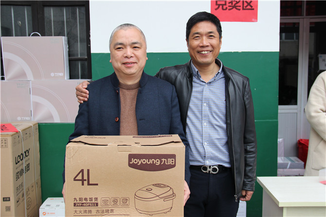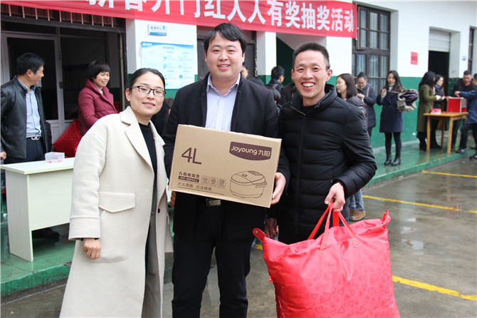 華寶公司為了迎接和感謝2017年的辛勤付出及時(shí)返崗的員工,在董事長(zhǎng)胡仁寶先生的親自帶領(lǐng)下,公司為員工準(zhǔn)備了豐厚的獎(jiǎng)品:大到洗衣機(jī)、掃地機(jī)、電飯煲小到被子、背包、四件套、開(kāi)水煲、電吹風(fēng)、雨傘、保溫杯等等只要到場(chǎng)人人有獎(jiǎng)。